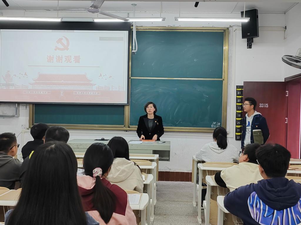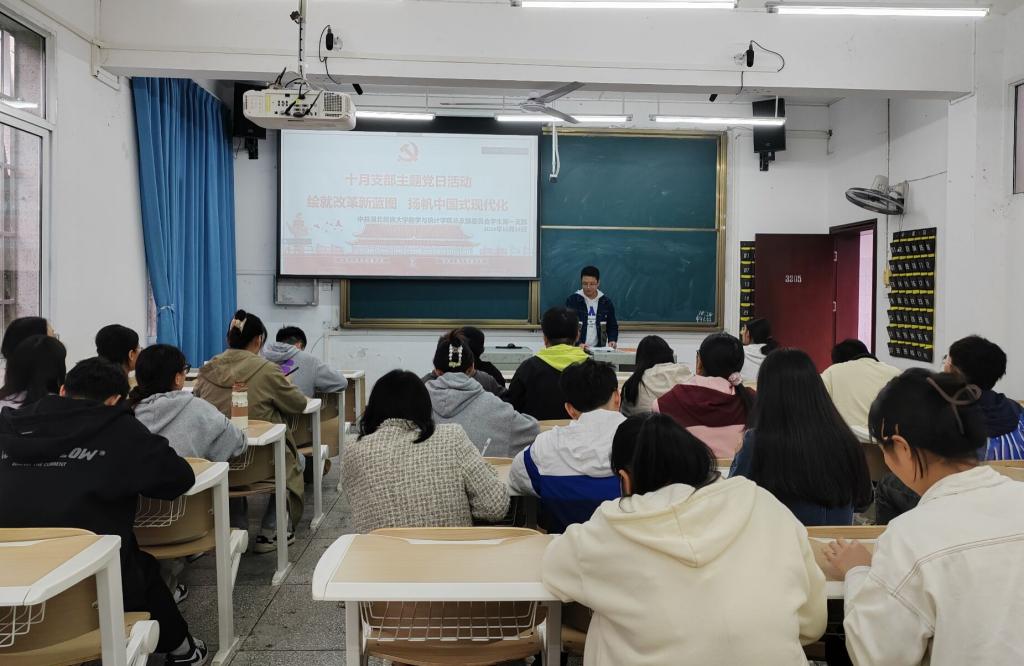 本网讯(记者 闵小玉 谢铭/文 谢铭/摄)2024年10月24日下午,数学与统计学院学生第一党支部在3205教室举办主题为“绘就改革新蓝图,扬帆中国式现代化”的支部主题党日活动。本次活动由支部书记廖祥宇同志主持。
