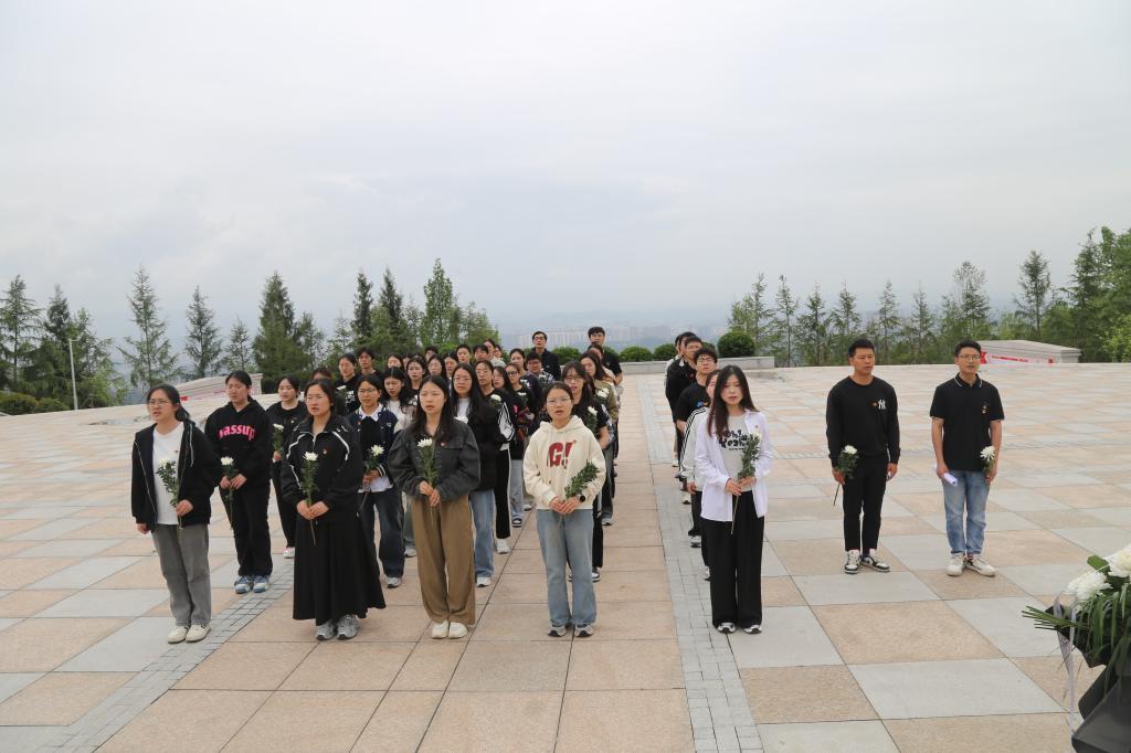 全体党员在革命烈士纪念碑前整齐列队,庄严肃穆。活动在雄壮的《义勇军进行曲》中拉开序幕,全体人员齐唱国歌。紧接着,四位学生党员代表缓步走向革命烈士纪念碑,向革命烈士敬献花篮,党支部书记廖祥宇同志、周雄同志神情肃穆上前整理绶带。随后,优秀党员代表张敏同志发言,表达了传承红色基因、践行初心使命的决心。全体党员手持菊花依次瞻仰纪念碑、烈士英名碑,将鲜花轻放在碑前,以朴素而真挚的方式表达对英烈的敬仰。