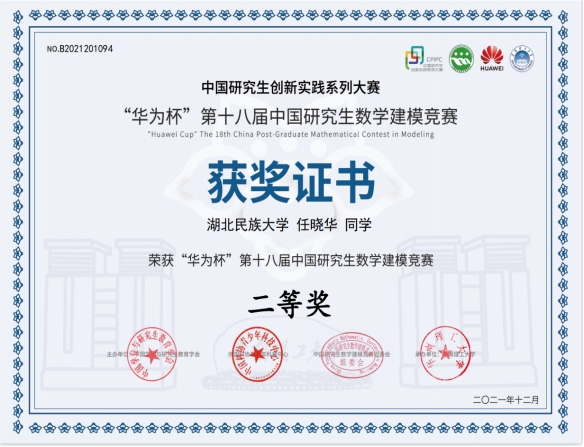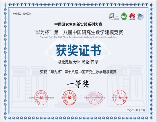 2021年,我院组织了22支队伍参加“华为杯”第十八届中国研究生数学建模竞赛,在激烈的角逐下,我院研究生郭轮、张荣涛、韩心如组获得全国一等奖,任晓华、王兴玉、董存娟组获得全国二等奖,实现了研究生建模一等奖“零的突破”。