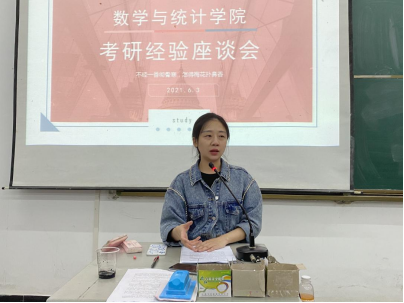 会议伊始,谭迪老师告知同学们考研的重要性和意义。她强调:“当今时代的就业难度大,要想找到一个好的工作,考研不失为一个好的路径。”随后,候习武同学从作息安排、择校、备考教训、备考经验和个人建议五个方面介绍了自己的备考过程以及学习方法。他提到“在备考之前一定要给自己定一个目标,不仅可以增加紧迫感还可以激励自己学习。”他还指出,适合别人的不一定适合自己,不要轻易改变自己的学习方式,注重基础,一步一步慢慢提升自己,不要只注重学习方法而忽略计算,要多动手,多实践。最后,他强调学习过程中一定要有效率,学会反思,学会总结,一旦开始就要坚持到底,不要轻易放弃。就考研复习的经验方面,韩心如,左娇,胡雪梅同学都结合自身的考研经历为大家总结各科考试技巧。分别从专业科目、英语、政治方面的复习方法,他们一致推荐了王亚华老师的数分课,徐涛的政治课等,为大家提供了更广泛的学习渠道。他们提醒正在备战学子,考研是一个漫长而且枯燥的事情,重在于用恰当的方式备战考研。同时也强调在备战考研的过程中应注重锻炼适当放松武皓悦同学谈到,不要忽视报考学校专业的要求,在确定报考学校之前一定要了解该专业的考试要求,不要因为几分钟的时间而偏离航向。学习一定是周而复始的坚持,学过的内容要多次复习。最后,他们都对下一届考研的学弟学妹们加油打气,预祝他们考上理想的大学。