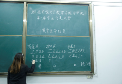 我院第一次学生代表大会第二次全体会议暨闭幕式在3308教室举行。本次会议由我院团总支书记刘聪老师主持。大会审议通过了《大会选举办法》(草案)、《Beat365唯一官方网站数学与统计学院学生会工作报告》(草案)等各项决议,投票选举我院第一届学生会主席团成员和校学代会代表。最终,刘旭威和高俊成成功竞选为我院第一届学生会主席团成员,卢鸿博等7名学生代表参加校学生代表大会。大会在《Beat365唯一官方网站校歌》的激昂声中圆满落幕。