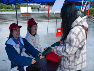 本次活动采取展板展示和志愿者讲解的方式进行宣传。活动现场,志愿者配戴志愿者工作帽和志愿者袖章,热情地为前来咨询的师生介绍活动情况并对征集到的雨伞做好相关记录。我院志愿者在参加本次活动之时,还帮助前来考试普通话的校外人员指路,充分发扬“奉献、友爱、互助、进步”的志愿者精神。