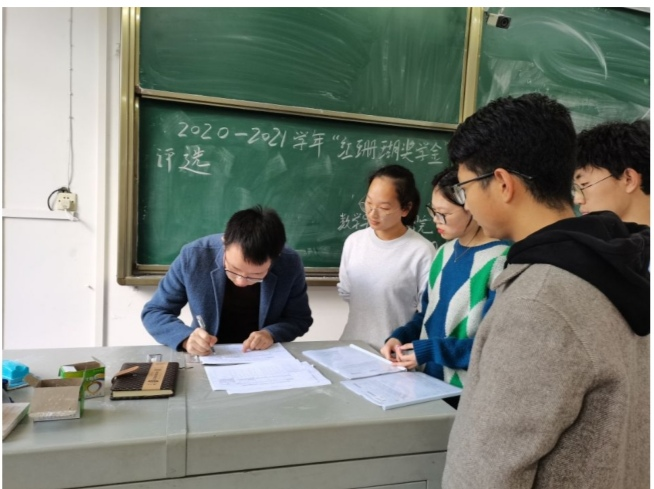 会议之前,两位同学均提前准备好相关材料及证明,确保内容的真实性。会议开始,刘聪老师针对每一项加分项目找到相应材料,根据《Beat365唯一官方网站普通本科学生奖学金评定及奖励办法》、《“红珊瑚基金”管理办法》等相关文件要求严格按照“红珊瑚奖学金”评审细则对参与评选的两位同学进行得分量化考核,按照相关规定进行统分,随后进行全院公示。