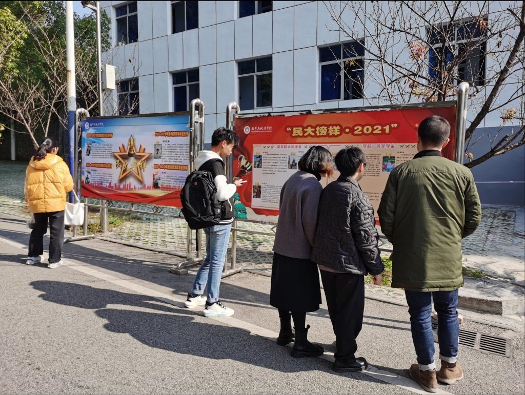 同学们认真观看视频,进一步学习青年榜样的学习态度、学习方法等,了解他们入党的初心和使命、实时调整学习状态、平衡学业与学生工作以及实现个人全面发展的可贵品质,感悟坚持不懈、努力拼搏的榜样力量。学生榜样不仅在学习上刻苦努力成绩优异,在学生工作上也能做到认真负责,积极响应新时代对青年的号召,努力达到新时代对青年的要求,成为社会主义的建设者和接班人。同时,我院制作宣传展板,展出优秀学生代表的个人荣誉等,赢得老师和同学们的驻足称赞。