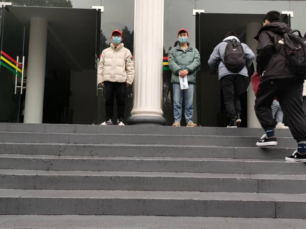 本网讯(记者 张粤 见习记者 余欣华/文 孙思/摄227日,我院师生陆续返校,在当前的严峻疫情下,我院积极采取疫情防控措施,各班晚点名依次向同学们发放口罩,各班班主任向学生强调当前的疫情形势,并叮嘱学生在今后14天进出必须佩戴口罩。