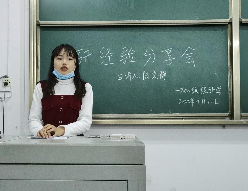 本网讯 (记者 何冰冰/文 何冰冰 刘丽文/摄)为进一步加强同学们对研究生考试的认识,增强考研信心和动力。4月12日及13日晚,我院20级统计学专业分别在3305、3203教室开展考研经验交流会。2018级统计学专业陆文静及信息与计算科学专业余文杰同学应邀分享各自的考研经验。本次交流会由2020级统计学专业班主任赵魁轩老师及班委会共同组织。