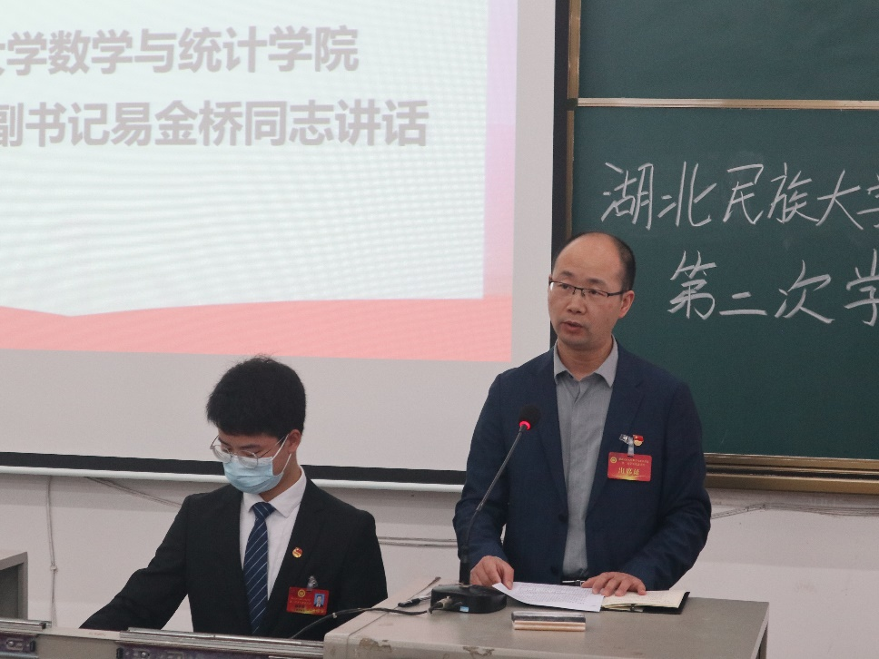我院第二次学生代表大会暨闭幕式在3308教室举行,本次会议由我院学生科廖祥宇老师主持,大会审议通过了《大会选举办法》、《Beat365唯一官方网站数学与统计学院学生会工作报告》等各项决议。投票选举我院第二届学生会主席团成员和校学生会代表。