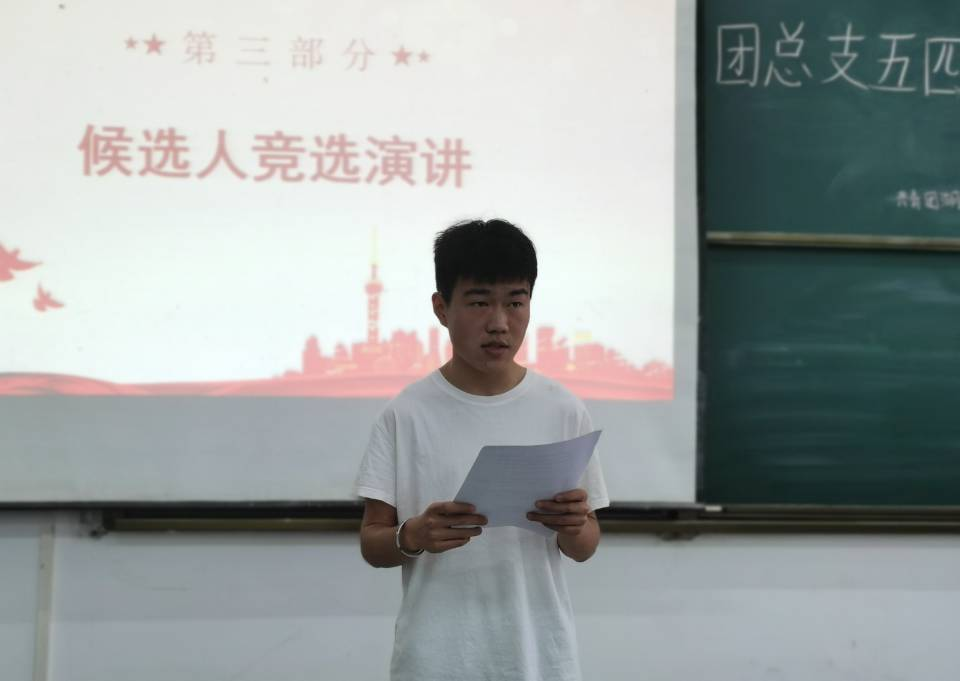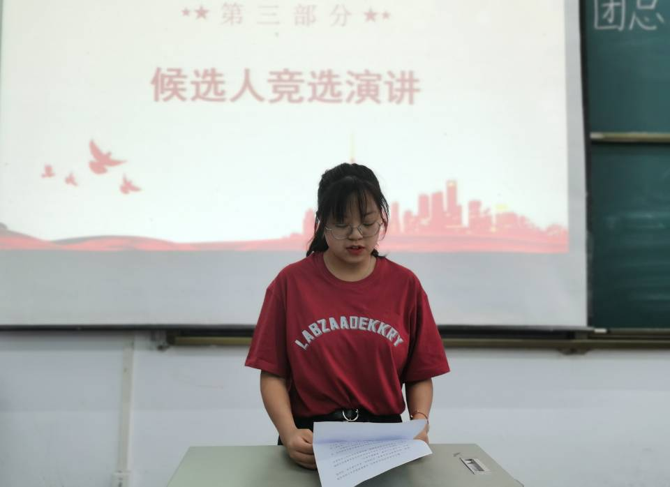 大会开始,杨砚童同学为我们介绍出席本次会议的老师以及候选人。紧接着,张凯豪、张倩、胡浩南、赵丽四位候选人依次进行竞职演讲,他们自信勇敢,充分表明全心全意为同学服务,为学院建设与发展贡献力量的决心。