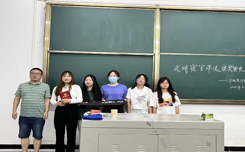 2022年6月26日晚,数学与统计学院2021级统计学专业在3307教室举办了“文明寝室评选”活动颁奖典礼。特邀数学与统计学院党总支书记赵魁轩、数学与统计学院统计系主任向会立担任本次颁奖嘉宾。颁奖典礼由班级文体委员杨砚童主持。