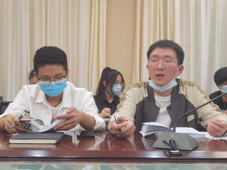 随后,刘老师表示对于上述评分细则有意见或其他观点的可以提出。同学们纷纷踊跃发言,观点鲜明,阐述有理。刘老师与廖老师耐心聆听并作出相关解释,并认真记录,现场互动氛围一片和谐。