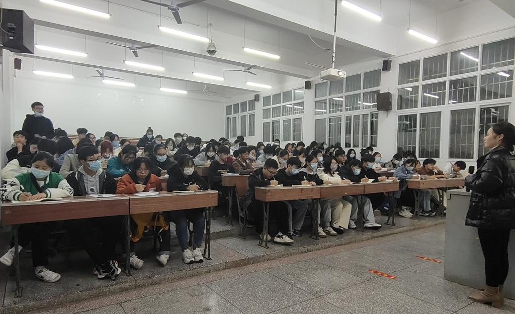 本网讯(记者 曾晓 唐金凤/文 曾晓/摄)11月28日晚,我院在3307教室开展第十六期学生干部综合素质培训第二次授课。本次授课由我院学生科黄丽娜老师讲授,2022级全体学生干部到场聆听。