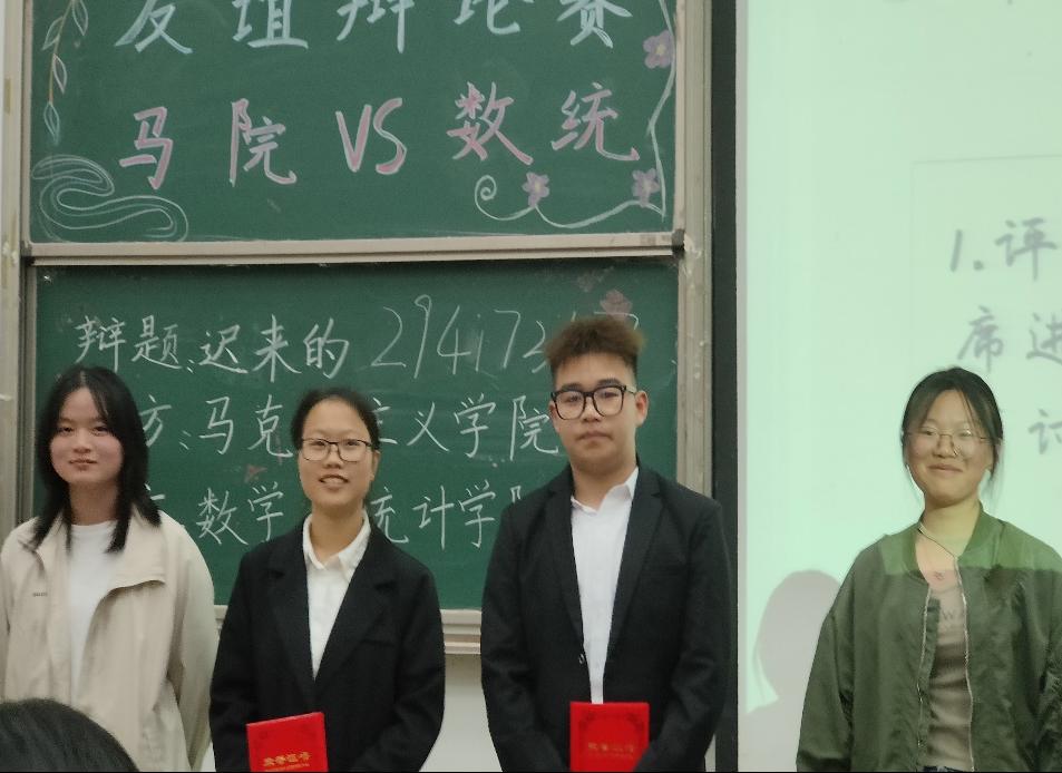 本网讯(见习记者 刘倩 钟颖鑫 田学炜/文 刘倩/摄)4月21日晚,我院联合马克思主义学院在5B403开展友谊辩论赛。我院张敏、熊皓云与马克思主义学院李梦萍、熊颖四位同学作为本次比赛评委。