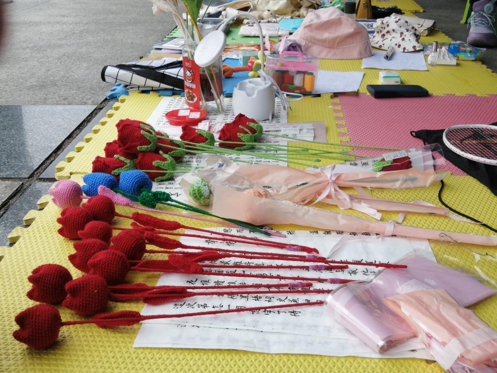 活动伊始,各位出售闲置物品的同学早早地来到指定地点布置摊位,将旧物摆放归类标上价格,并张贴花式宣传语,醒目多彩,以供同学们挑选。我院还设置抽奖环节,鼓励同学们购买旧物,参与抽奖,吸引同学们前来购买商品。