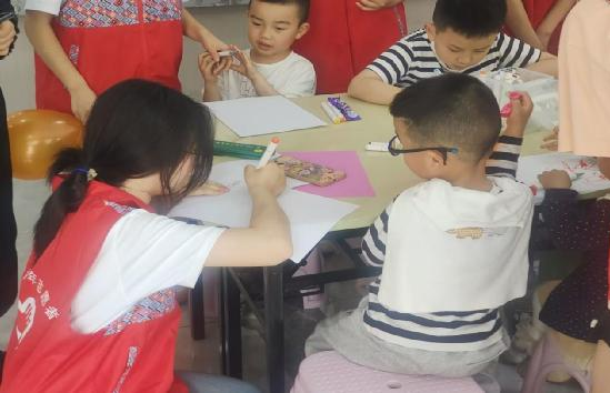 志愿者们首先向小朋友们科普母亲节的来历,协助他们给母亲准备礼物,倡导他们写一封感恩信。接着是折纸和绘画环节,在志愿者的帮助下小朋友们完成折纸的制作,并画出自己心目中妈妈的模样,此环节增强了小朋友们的感恩意识。最后由志愿者们带小朋友们学习手势舞,向母亲进行表演并将准备的礼物送给母亲。