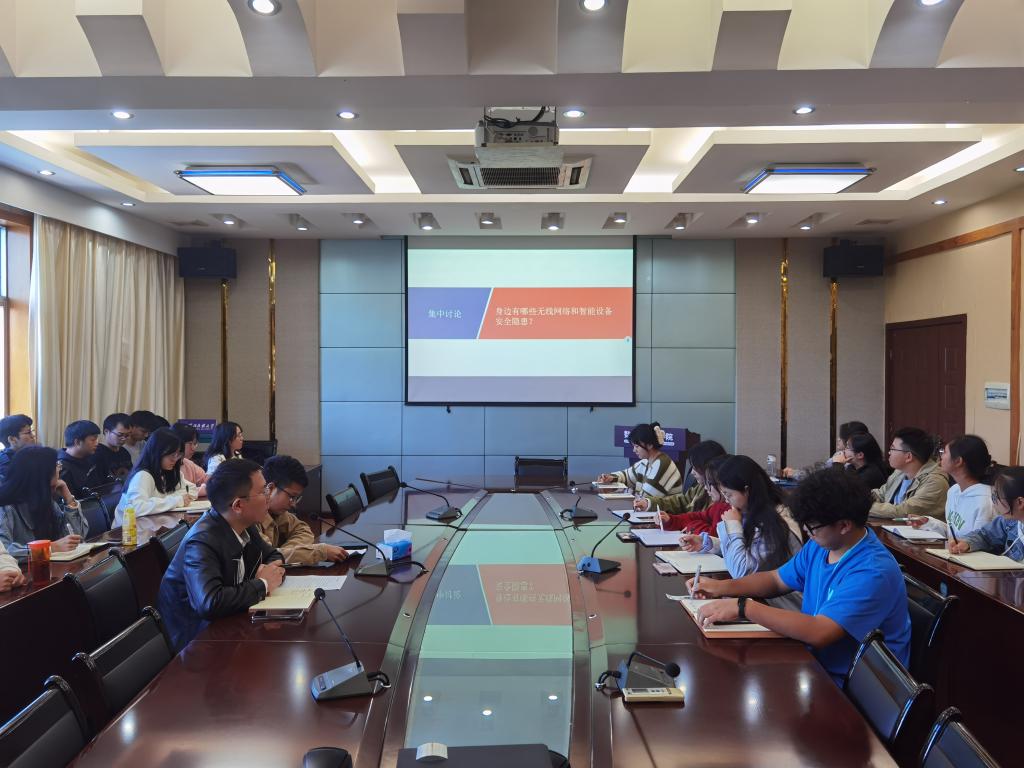 随后,廖祥宇以“增强保密意识,筑牢保密防线”为主题,带领同学们学习保密知识。他首先介绍当前的保密形势,列举常用可能泄密的软件,让同学们悉知泄密的主要渠道,识别常见的间谍陷阱。他强调要重视手机及其应用程序的安全隐患,增强保密意识,提高保密能力。