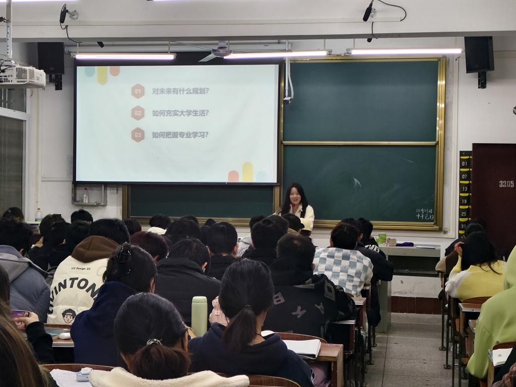 向丽静同学对大学规划作了经验分享:大一认真学习专业知识,同时也要适当的运动并积极参加课外活动;大二充实自我,参加各项比赛以及技能考级;大三沉淀自我,为以后的发展做好各项准备;大四为实习做准备,迎接新的阶段。最后,她提出“读万卷书 ,行万里路”,建议同学们劳逸结合,在社会实践中丰富自己。