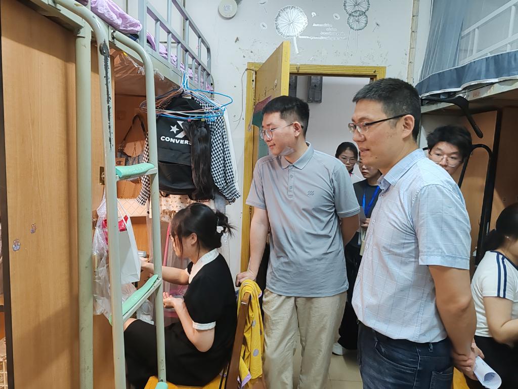 学院党总支副书记郑敏带领学生党员及学生干部深入学生寝室,了解学生日常,询问寝室诉求,收集同学们对学院教学管理、学生服务等方面的意见和建议,为提供精准帮扶、改进学生工作提供依据。