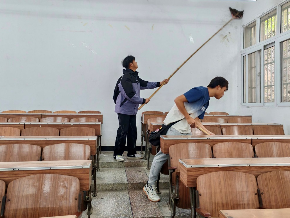 为提升学院环境卫生、营造良好学习氛围,培养学生吃苦耐劳、团结协作精神。11月7日中午,学院开展“劳动教育·院落共净”卫生大扫除活动。本次活动由数学与统计学院学生会权益部主办,面向学院全体学生,覆盖学院全部教室。