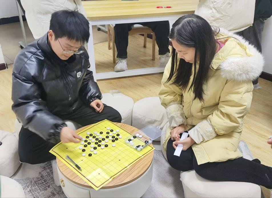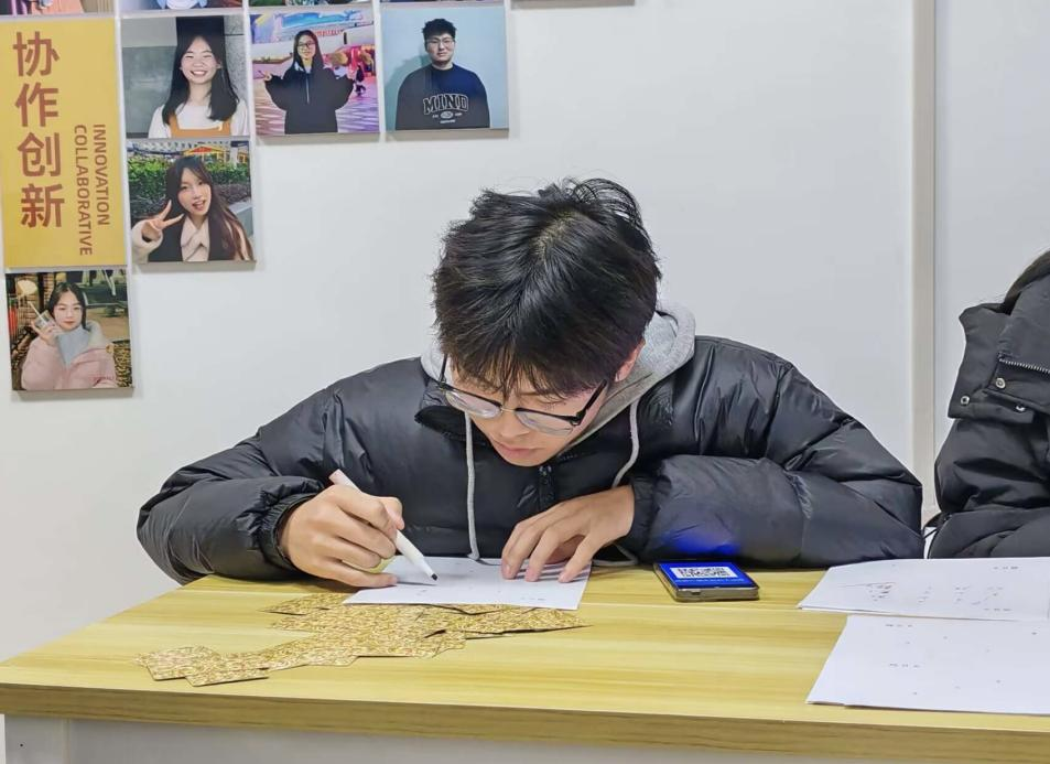 数独游戏环节里,参与者需满足每一行,每一列,每一小宫格的数字都不重复,仿佛在数字迷雾里寻找唯一出路,让学生能保持头脑清醒和敏捷应变能力,激发对数学的好奇心和探索欲;24点游戏环节中,参与者随机抽取四张扑克牌,根据加减乘除运算法使其结果为24,增强学生对数字敏感程度,增加思维灵活性;五子棋游戏环节里,两名参与者分别手执黑白两棋,在棋盘上进行无声博弈,率先五枚同色棋子连成一线的学生获得游戏胜利,这不仅能提高学生的专注度和智力,而且增强记忆力,锻炼思维能力。在其他游戏环节中,每位参与者也都表现出极高的积极性。无论是解谜、推理还是策略布局类型的数学游戏,参与者们都沉浸在各种游戏带来的乐趣中,不知不觉间,对数学的兴趣被激发出来。