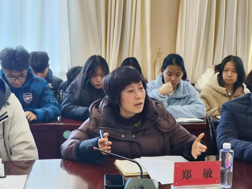 郑敏副书记传达了湖北省团省委十五届五次全体(扩大)会议精神,即“青春领航、青春建功、青春护航、青春强基、青春提能”五大青春行动,并结合学校团学工作安排,对团学干部要提高政治站位,提升服务学院中心工作的自觉性,要做好工作谋划,提升学生工作的主动性,加强“四自”管理,明确职责,严于律己,团结协作,要强化思想引领、学风引领、实践引领、组织引领,切实做到三个牢记,一是牢记团学工作”热情、团结、负责”的宗旨;二是牢记以学习为本,以榜样为先的原则;三是牢记创新进取、追求卓越的工作目标,大家凝心聚力、创新进取,希望在新的一年做出新的作为。