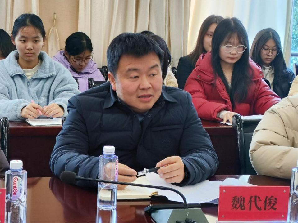 为针对新学期工作计划开展,加强学生管理,数学与统计学院于2月27日中午在四楼会议室召开2025年春季学期团学组织述职会议。党总支书记魏代俊、党总支副书记郑敏、学生科副科长廖祥宇、院团委与学生会各部门及其下属组织成员代表参加会议。学生科辅导员、团总支书记李子君主持会议。