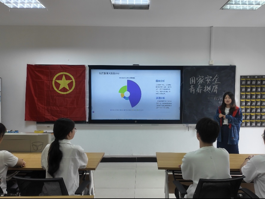 4月20日,学院团委书记李子君带领0223403支部团员在3406教室开展为“国家安全,青春守护”主题团日活动。活动分为理论学习和情景实践两部分,引导青年团员深化国家安全意识,筑牢国家安全“青春防线”。