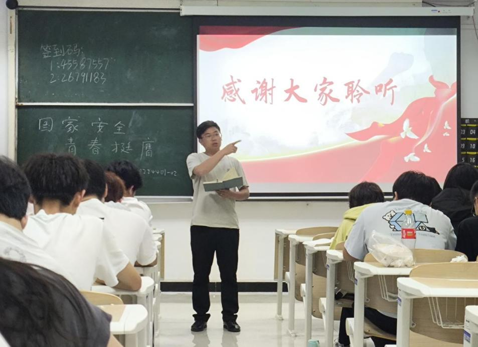 紧接着,团支书带领同学们开展团日活动。团支书讲解了国家安全的重要性,也为大学生关于如何维护国家安全提出建议,并且呼吁大家积极维护国家安全。