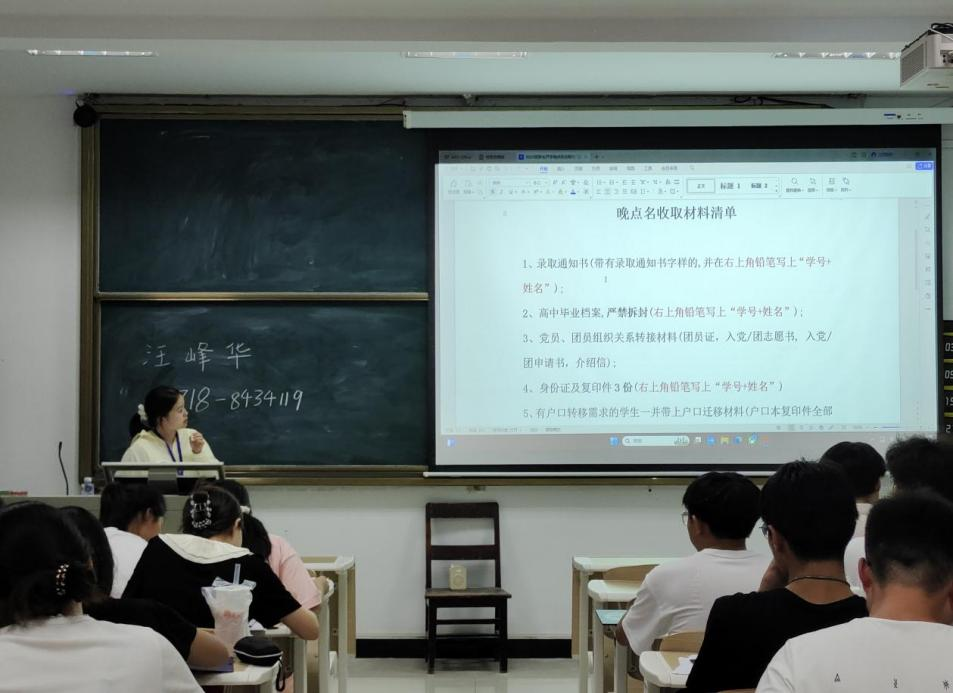学生干部协助完成高中档案、贷款回执、组织关系等材料的核验工作,并现场发放小面包、小马扎等军训物资,实现“零差错、零延误”。班主任还就开学典礼和军训安排进行说明,反复强调安全、纪律和集体行动的重要性。