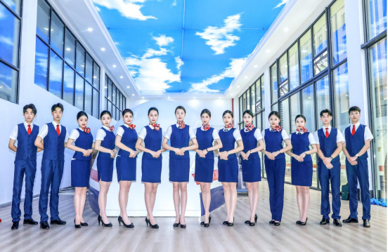 “全景式模拟”实训教学环境。建有融教育教学、技能实训和应急事件处理的一体化仿真模拟训练舱、民航乘务员在线学习中心(CBT实训室)、形体训练室、形象塑造室、飞机模型展厅等教学实训基地。