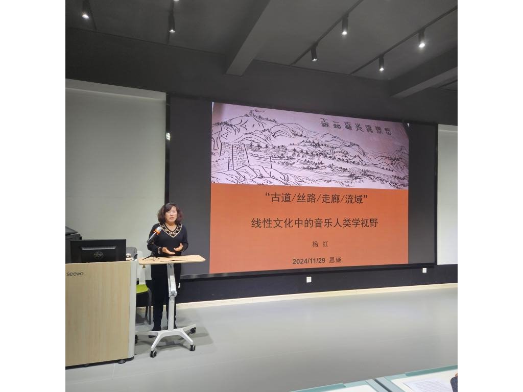 2024年11月29日下午,哲学博士,现任邵阳学院音乐舞蹈学院院长、原中国音乐学院教授、博士生导师杨红教授在音乐舞蹈学院智慧教室举办了题为《“古道/丝路/走廊/流域”线性文化中的音乐人类学视野》的讲座。我院50余名师生参加了此次活动,活动由院长谷秋阳主持。