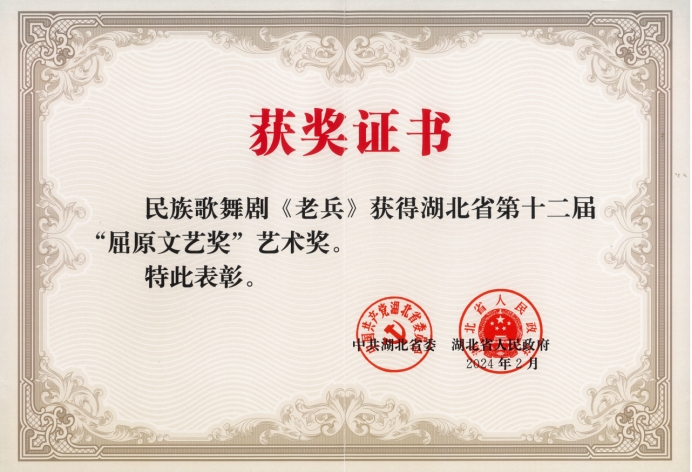 Beat365原创民族歌舞剧《老兵》喜获湖北省第十二届“屈原文艺奖”艺术奖