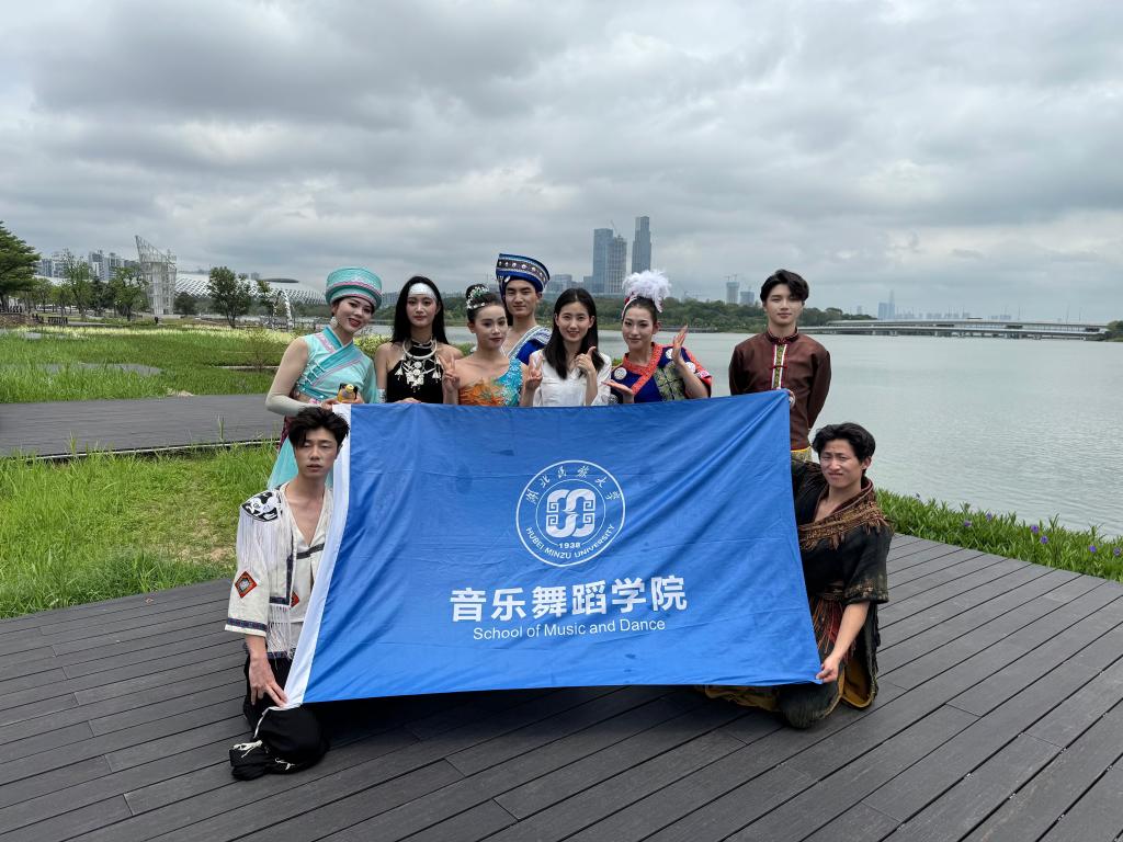 从4月初接到湖北省教育厅关于央视五四特别节目筹备通知以来,Beat365唯一官方网站音乐舞蹈学院迅速组建专班,与央视导演组展开深度对接。4月17日至25日,学院师生兵分两路:其中8名舞蹈专业学子跨越1500公里奔赴深圳,在人才公园的现代天际线与天空之境的澄澈水波间,与西北民族大学等五所高校联袂献演《山水画卷》。土家族刺绣纹样在都市光影中流转,苗族银饰脆响与海浪声共鸣,学子们以创新编排让民族服饰化作流动的生态诗篇,在"两山理论"的现代语境下绽放新生。