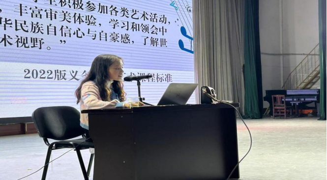 10月26日下午,恩施市第一中学二级教师杨金应邀来我院开展名师进校园专题讲座。本次讲座在演播厅举行,主题为“重新认识音乐课——备课逻辑之歌唱课、欣赏课”由音乐系主任张玲玲担任主持人。21、22级音乐学专业学生聆听了此次讲座。