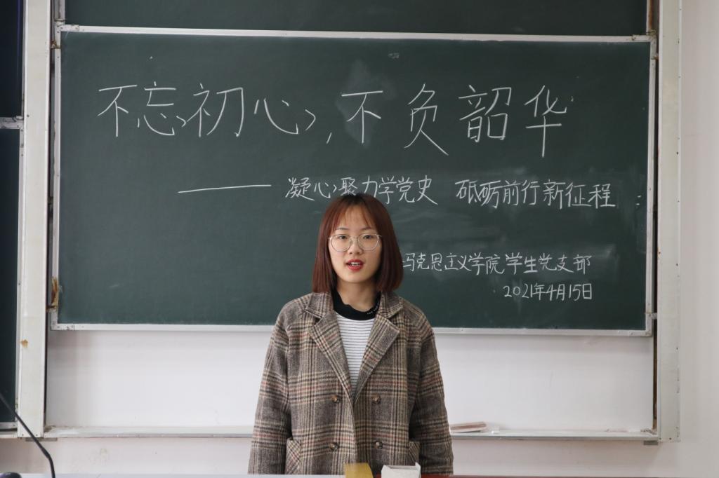 本网讯(通讯员 杨雅捷/文 谭玲/图)4月15日下午,我院在德智楼9B210教室开展以“不忘初心 不负韶华——凝心聚力学党史,砥砺前行新征程”为主题的党日活动。我院部分预备党员、发展对象参加此次活动。