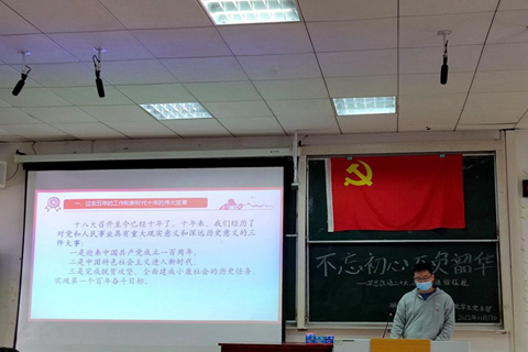 11月17日下午,我院学生党支部于德智楼9B208教室开展十一月主题党日。学生党支部书记杨婷,教师党员兰洁、毛召以及全体学生党员、预备党员参加。