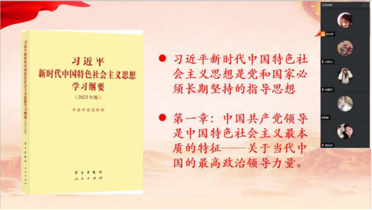 赵珈萱带领全体党员共同学习了《习近平新时代中国特色社会主义思想学习纲要(2023年版)》的绪论和第一章内容。主要学习了习近平新时代中国特色社会主义思想是党和国家必须长期坚持的指导思想和中国共产党领导是中国特色社会主义最本质的特征——关于当代中国的最高政治领导力量。