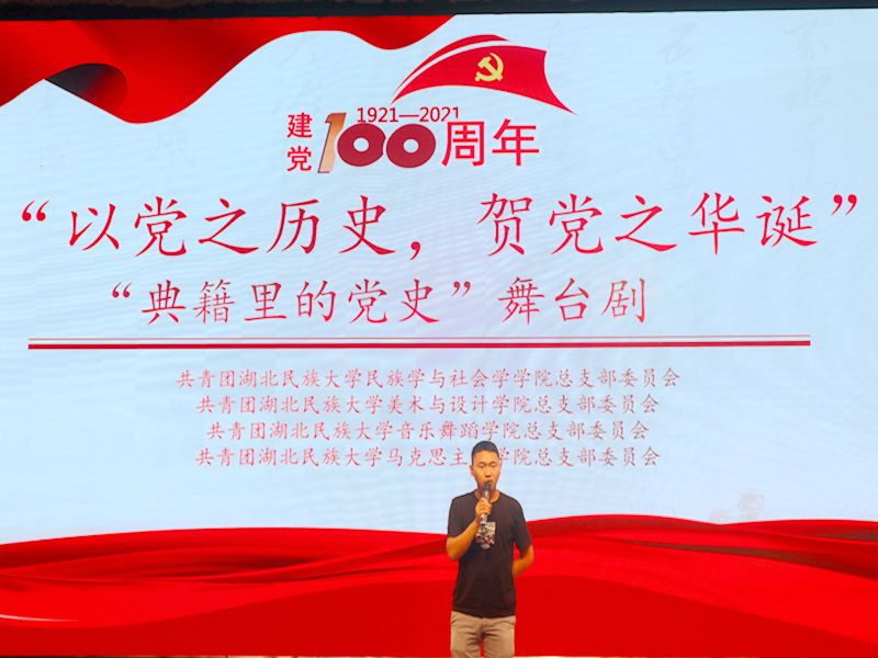 此次展演共四个剧目,各院在选题上以小见大,用小故事映射大时代,重现建党百年的奋斗历程和辉煌成就。我院表演的《建党伟业》,讲述五四运动爆发到中共一大召开的历史,深情演绎中国共产党人走过的峥嵘岁月,展现出中国共产党的光辉历程;民族学与社会学学院改编的情景剧《长征》情节紧凑,讲述红军历尽磨难爬雪山、过草地的故事,生动诠释红军战士“红军不怕远征难”的高贵品质以及对中国夺取革命胜利的美好憧憬;美术与设计学院表演的《回首四十年》,演绎恢复高考及2008年北京奥运会的壮阔历史,展现改革开放以来40年党的艰苦奋斗历程;音乐与舞蹈学院表演的《脱贫攻坚——花秋在战斗》,向所有坚守扶贫一线的战士致敬,展示在党的正确方针政策的领导下扶贫党员踏实的工作态度以及贫困地区欣欣向荣的发展态势。经过激烈角逐,美术与设计学院荣获一等奖,音乐与舞蹈学院荣获二等奖,我院和民族学与社会学学院荣获三等奖。