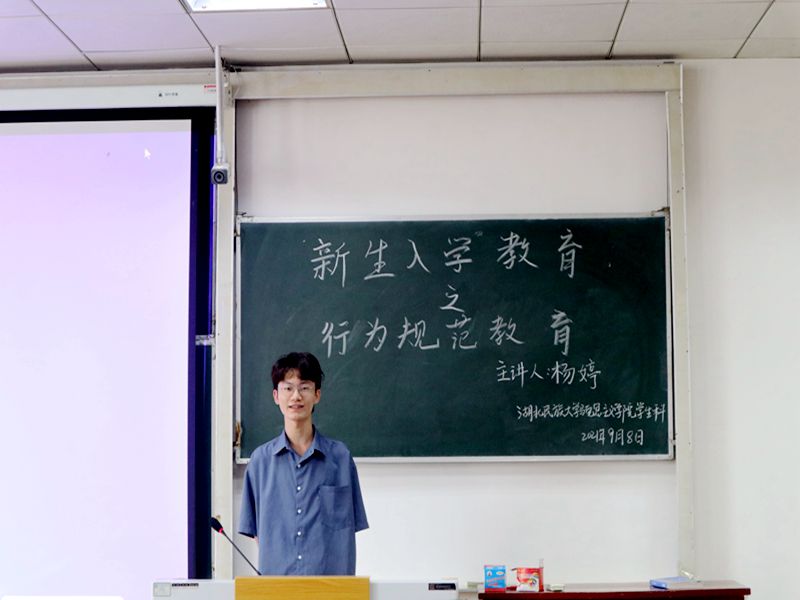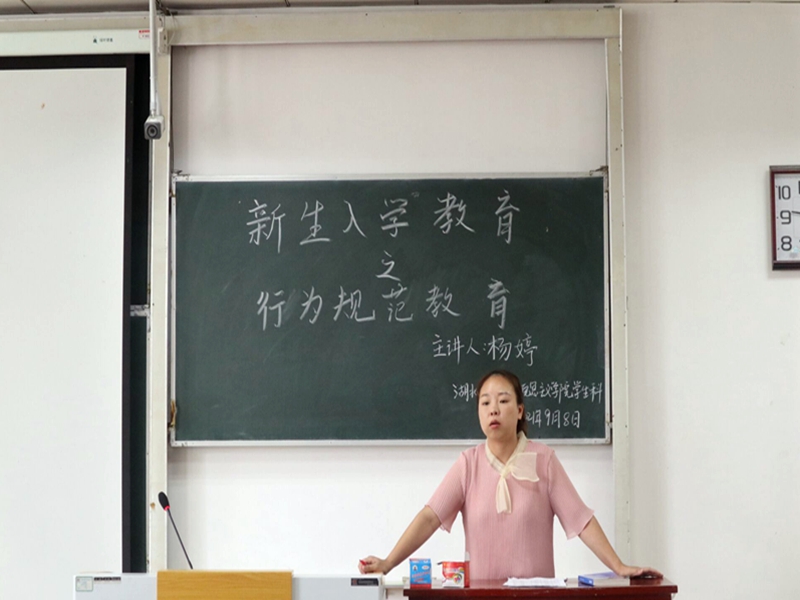 本网讯 (通讯员 罗紫彤/文 董轩琳/图)9月8日上午,我院在德智楼9B210教室开展2021级新生入学教育之行为规范教育活动,我院学生科科长杨婷担任主讲人,全体大一新生参与此次活动。