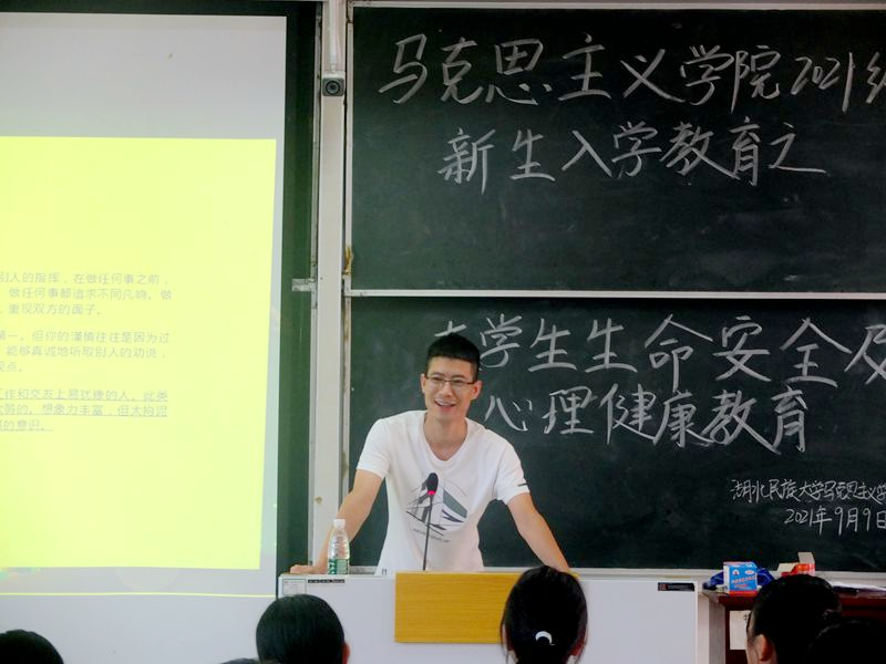 本网讯(通讯员 罗紫彤/文 吴丁鑫/图)9月9日下午,我院在德智楼9B210教室开展2021级新生入学教育之大学生生命安全教育及心理健康教育活动。我院团总支书记毛召受邀出席并担任主讲人,全体大一新生到场聆听。
