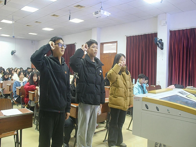本网讯(通讯员 谭绍杰 王婵媛/文 钟静双/图)11月29日下午,我院于德智楼9B208教室举办入团仪式。我院大二、大三全体学生参与此次活动。我院团总支书记毛召应邀出席。