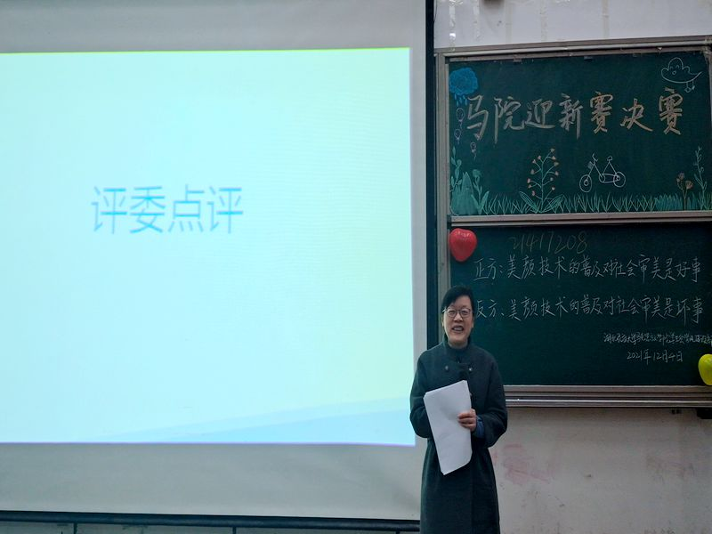 正反双方辩手围绕“美颜技术的普及对于社会审美是好事还是坏事”的辩题展开辩论。最终,正方获得“优胜队”荣誉称号,反方三辩熊颖获得本次比赛“优秀辩手”荣誉称号。