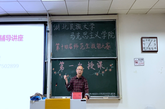 启动仪式结束后,万俊作第一次授课——说课技能讲座。他主要围绕“口头表达能力”、“教态”、“学生互动”、“PPT制作”、“板书”、“讲课与说课之区别”六个方面展开具体阐述。其中,他重点强调了“教什么”“怎样教”“为什么这样教”三个要点对于说课的重要性。与此同时,他也表示:“万法读为本”,同学们要努力学好专业知识、夯实基础,将教学技能训练中的知识运用到说课中去,反复练习,提升自己的说课能力。