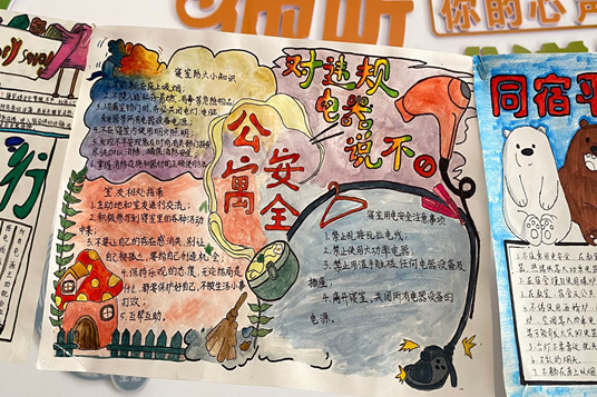 活动过程中,学生积极参与、热情创作,用一支支画笔、一张张白纸描绘着文明安全的宿舍观念,体现了学生对宿舍安全的理解和认识。手抄报内容丰富,既有关于寝室安全的知识性与趣味性,又兼具美感与艺术性。活动结束后,参赛作品在达人7栋118学生活动功能室展出,活动效果较好。