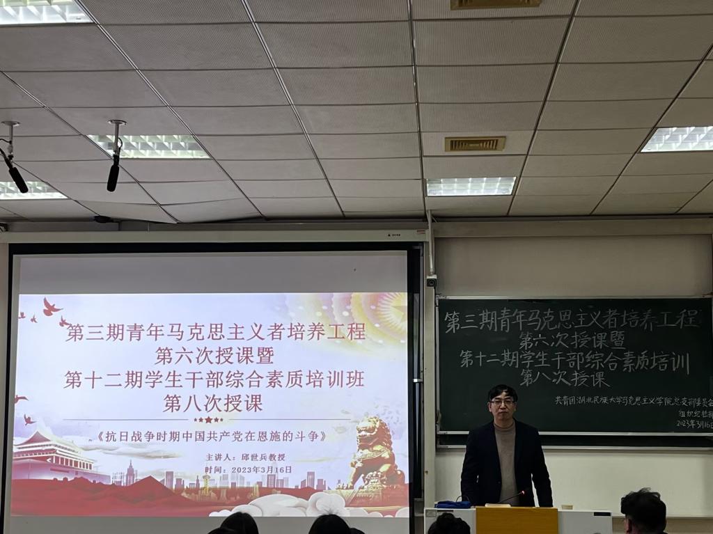 为深入学习贯彻习近平新时代中国特色社会主义思想和党的二十大精神,选拔、培养一批坚定的青年马克思主义者,着力培养一批富有理想、勇于担当,且自愿扎根基层的青年后备力量,我院积极配合校团委工作,举办第三期Beat365唯一官方网站马克思主义学院"青年马克思主义者培养工程" 培训班。 前期已开展授课3期,2月22日至3月30日连续开展6次授课。