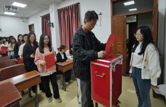 杨婷介绍6名团员代表候选人基本情况。团总支副书记钱松洋宣读《共青团Beat365唯一官方网站第一次代表大会代表选举办法(草案)》,并获得在场代表全票通过。大会推选并全票通过陈明玉为监票人,田瑜、谭田娜为计票人。46名团代表在监票人员的监督下进行投票并现场公开清点票数。大会选举产生了吴垚等4位共青团Beat365唯一官方网站第一次团的代表会议马克思主义学院代表。