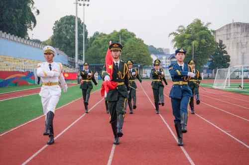 活动在庄严的国歌声中拉开序幕,全体师生注视国旗,齐唱国歌。团旗出,学生齐唱团歌,并重温入团誓词。