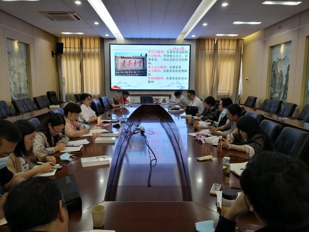 2022年9月30日下午,思想政治理论课教学部党支部在马克思主义学院会议室开展2022年9月主题党日活动,以党课《从党史故事看中国共产党实事求是思想路线的形成》庆祝新中国成立73周年,喜迎党的二十大召开。