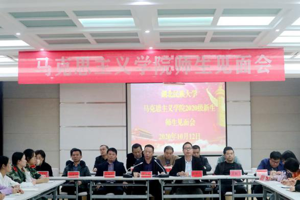 本网讯(通讯员 向海璐 周红/文 曾艳岚/图)10月12日晚,我院在德智楼三楼多功能会议厅举办2020级师生见面会。我院党总支书记罗成富,院长徐铜柱,副院长张明波及部分教师应邀出席会议,我院全体大一新生到场聆听。会议由张明波副院长主持。