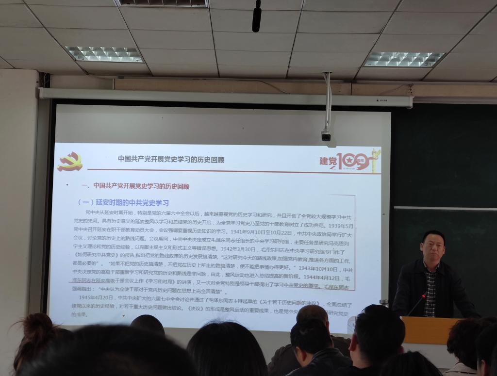 据悉,自党史学习开展以来,各院举行了党史学习专题辅导会、党史学习座谈会、各支部集中学党史会等多种形式的活动,马克思主义学院教师承担了党史学习宣讲团的主要任务,本次活动是德智楼四个学院首次集中进行党史学习。在形式内容丰富的党史学习教育活动中,广大师生能透过百年党史,读懂中国共产党人的初心使命,知党史,感党恩,从百年历程中传承红色基因。