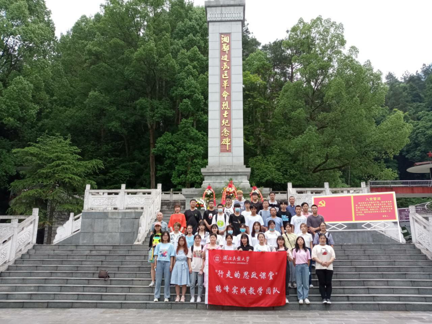 鹤峰队由教师万俊、冯显德、袁大勇带领,前往集优农产品展示中心和湘鄂边苏区鹤峰革命烈士陵园进行参观。在场学生聆听了由鹤峰县委宣传部理论宣教股股长黄珊珊带来的关于当地“茶文化”的精彩讲解。随后,带队老师和学生来到革命烈士纪念碑前向革命烈士鞠躬默哀。在场学生认真聆听和了解有关革命历史及英雄故事,并纷纷表示要以革命先烈为榜样,传承优秀革命文化,精进学业,投身到中国特色社会主义的伟大实践当中。
